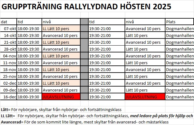 GRUPPTRÄNINGAR RALLYLYDNAD hösten 2025